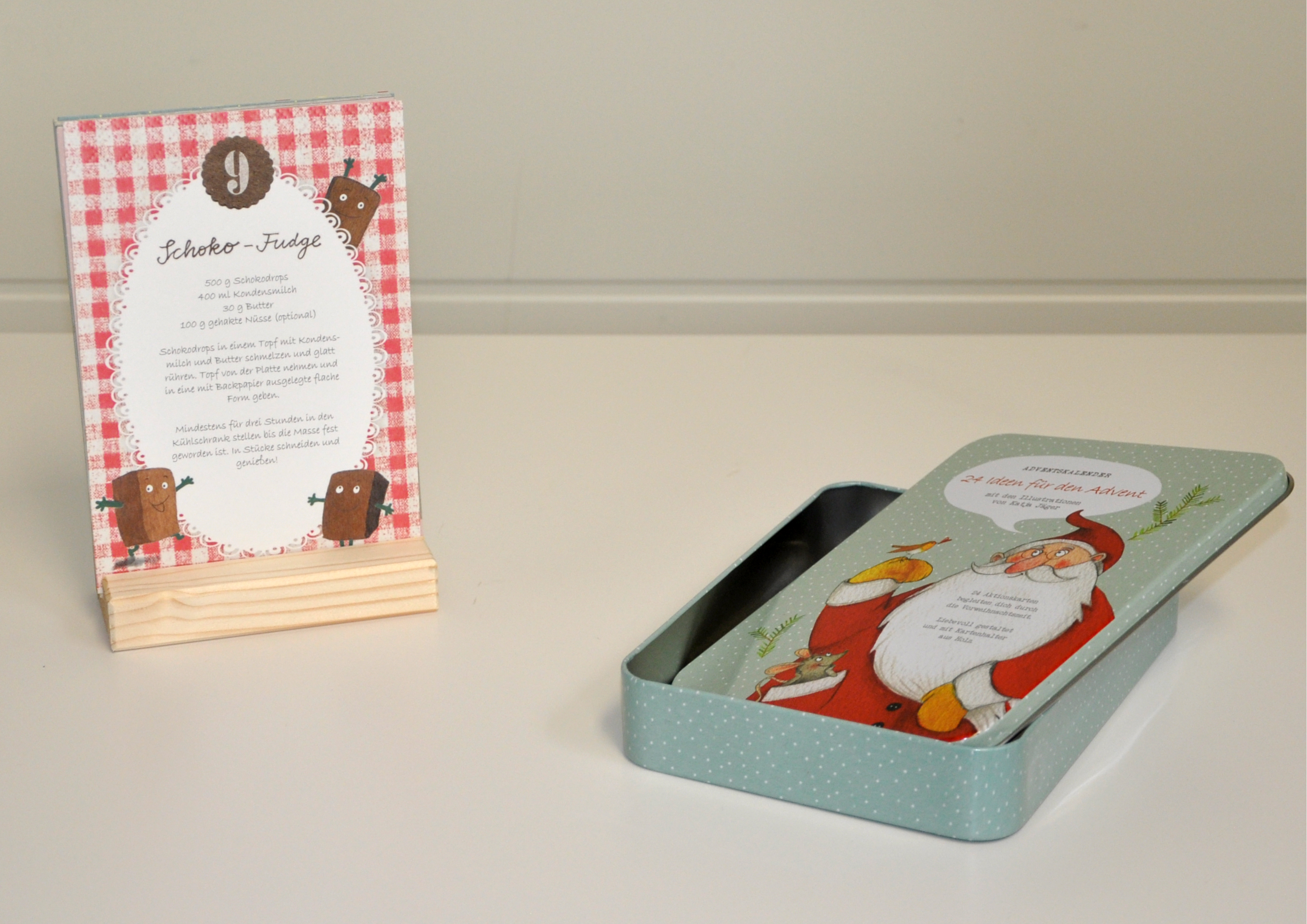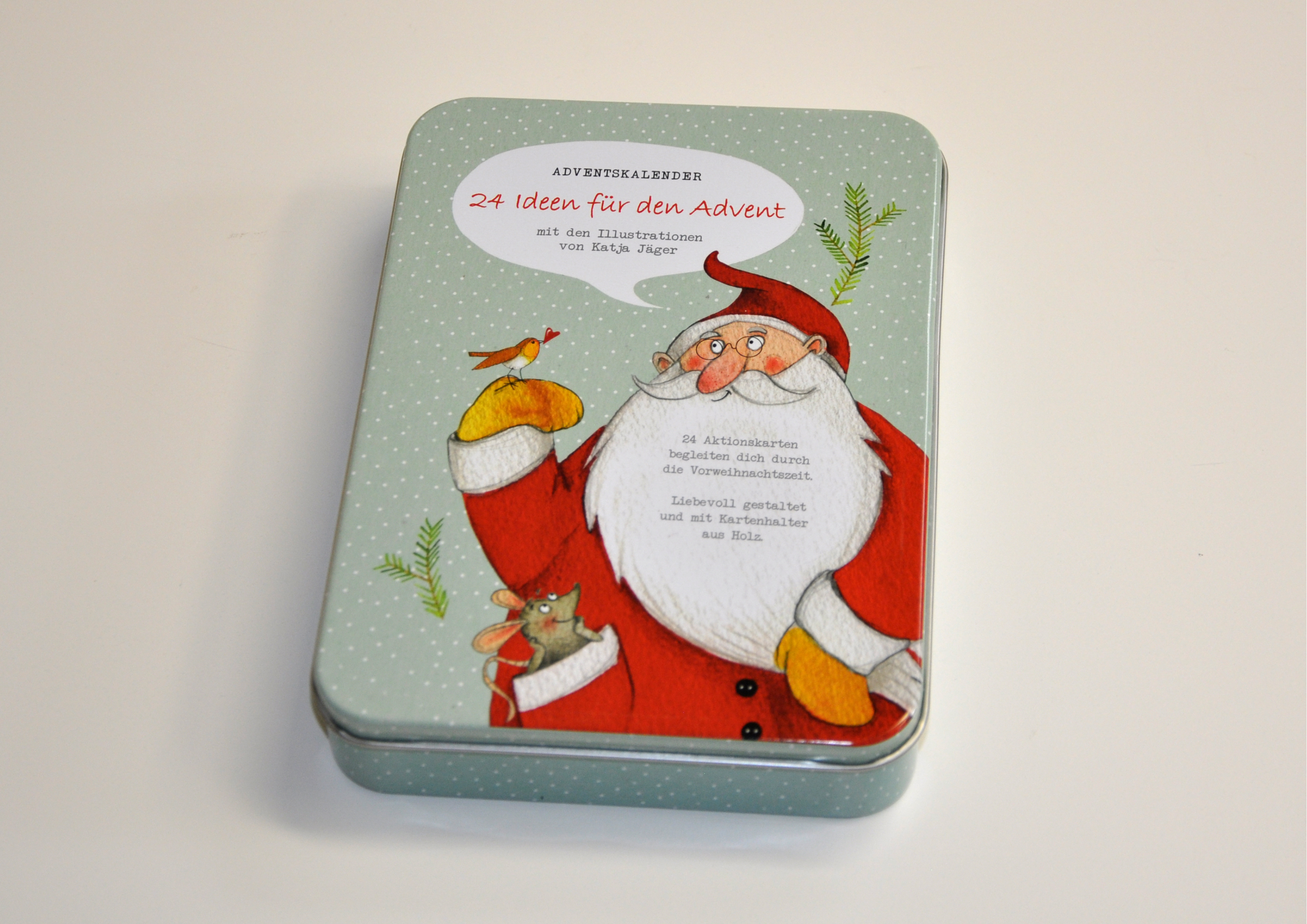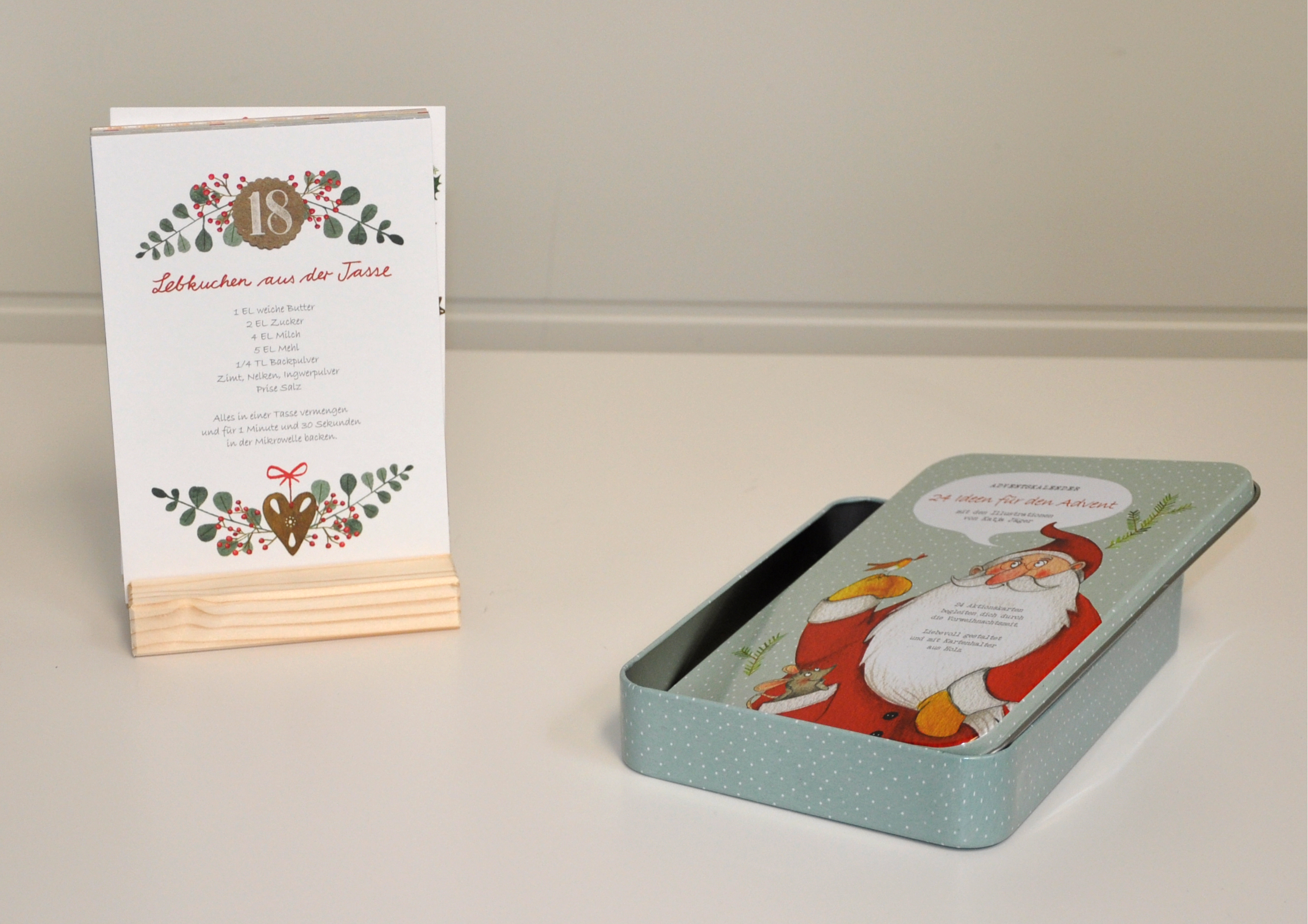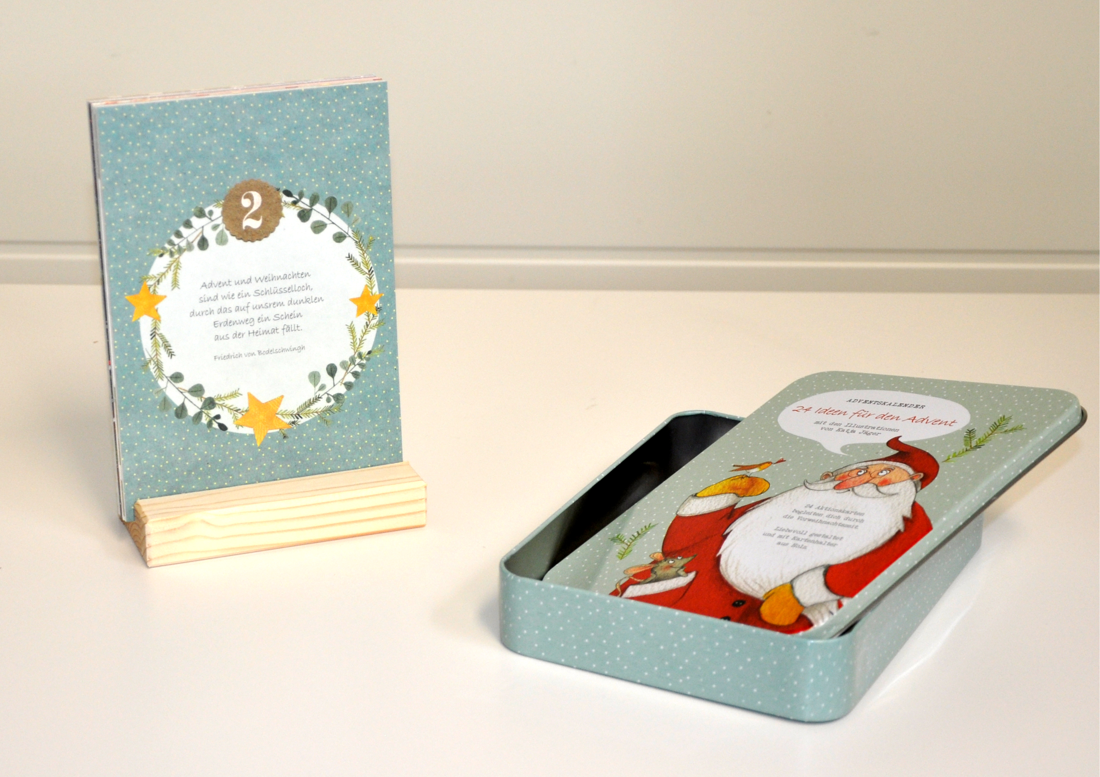Die Dose mit den 24 Adventskalenderkarten wird inklusive