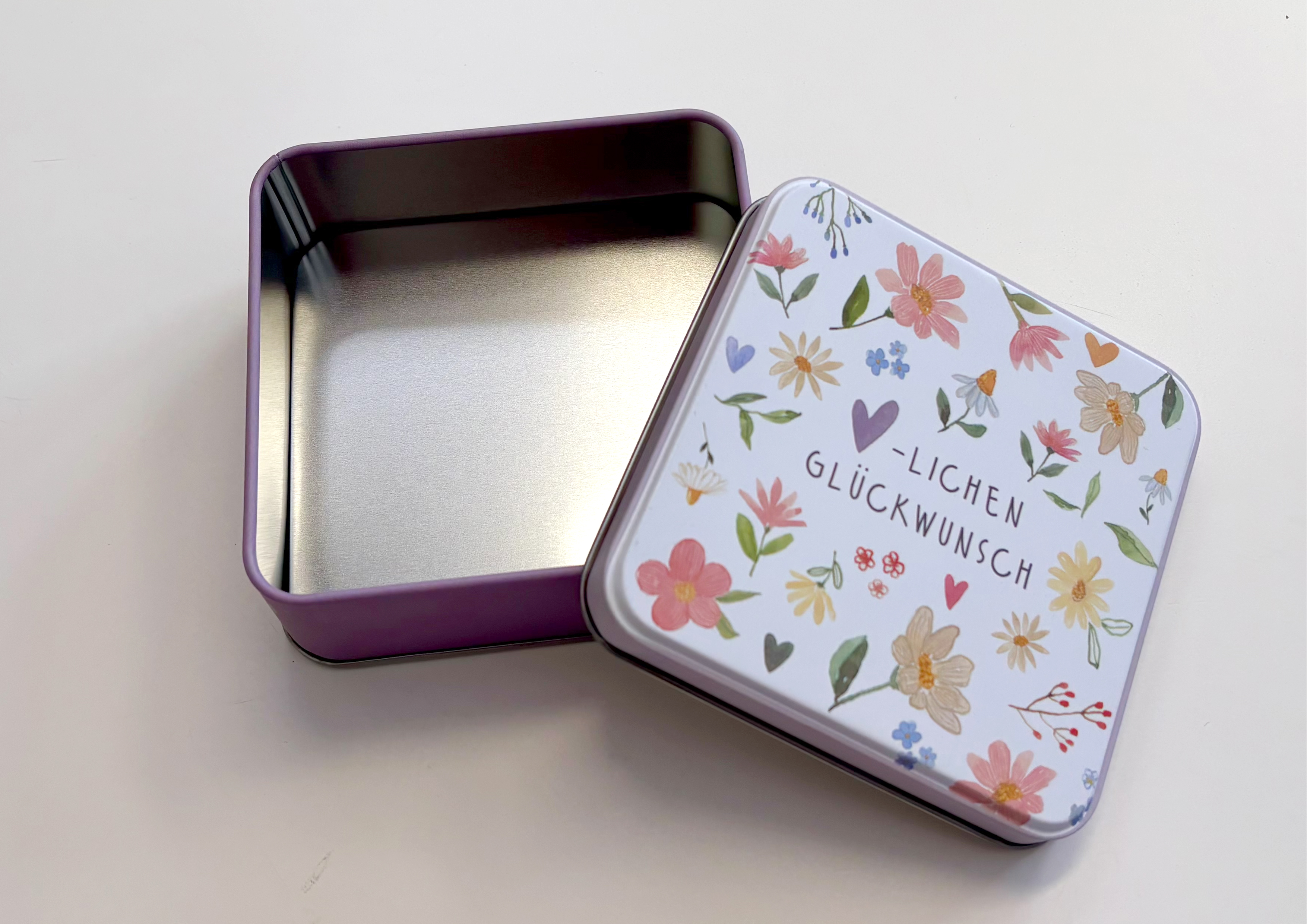Blütenteppich / Herzlichen Glückwunsch - Geschenkdose aus Metall