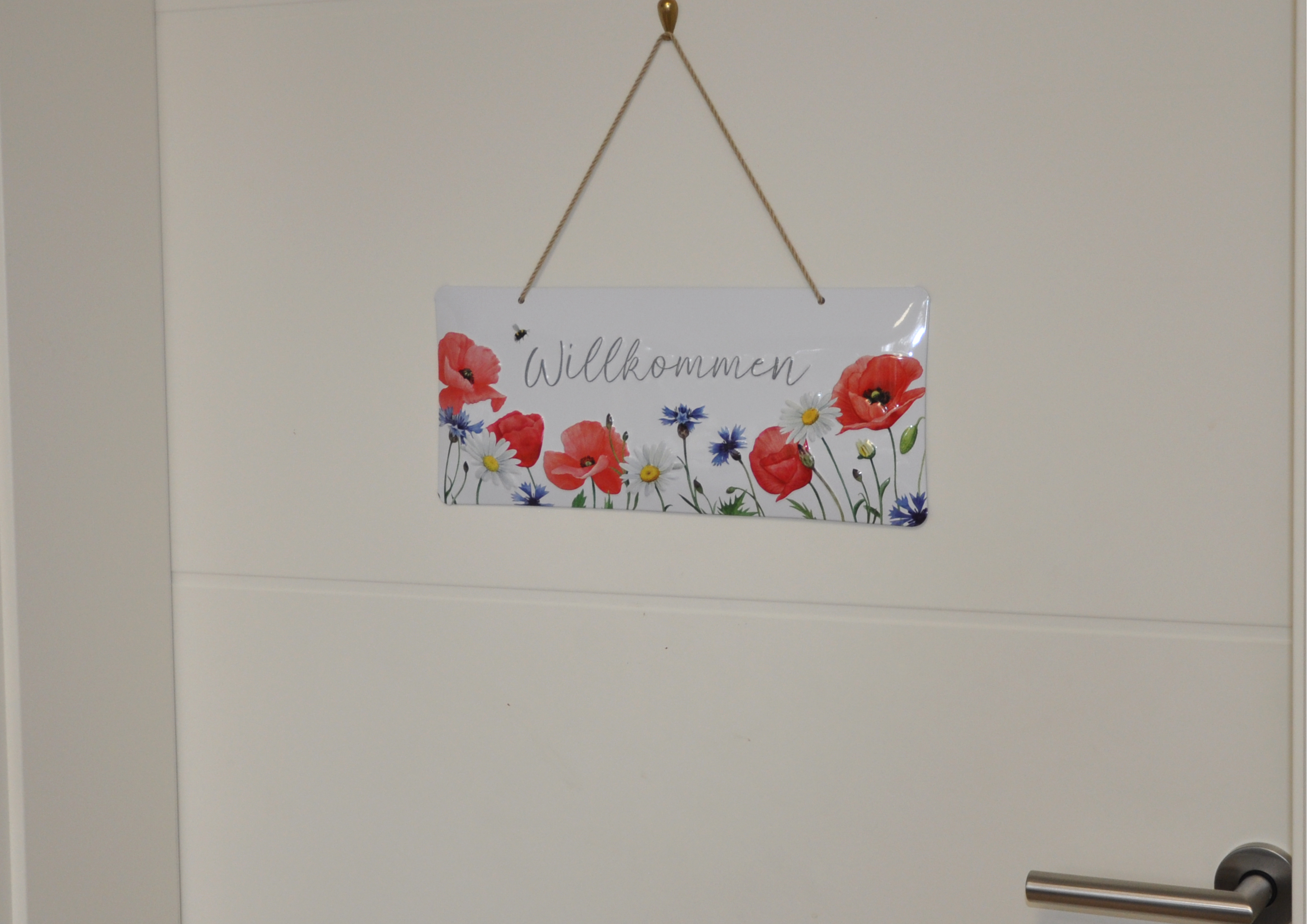 Feldblumen / Willkommen - geprägtes Schild aus Blech