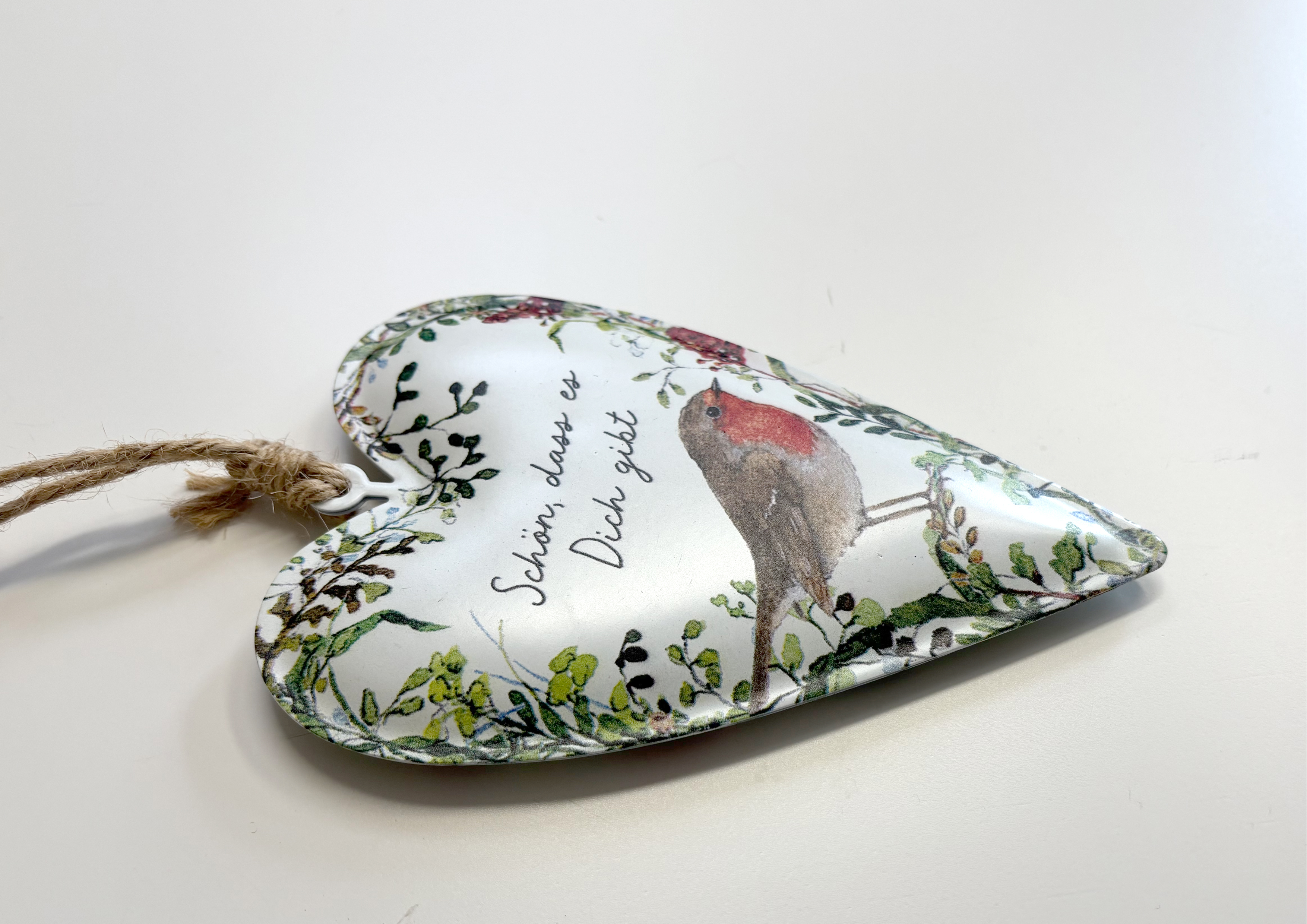 Produktinformationen "Gartenvögel / Schön, dass es Dich gibt - Dekoherz aus Blech"