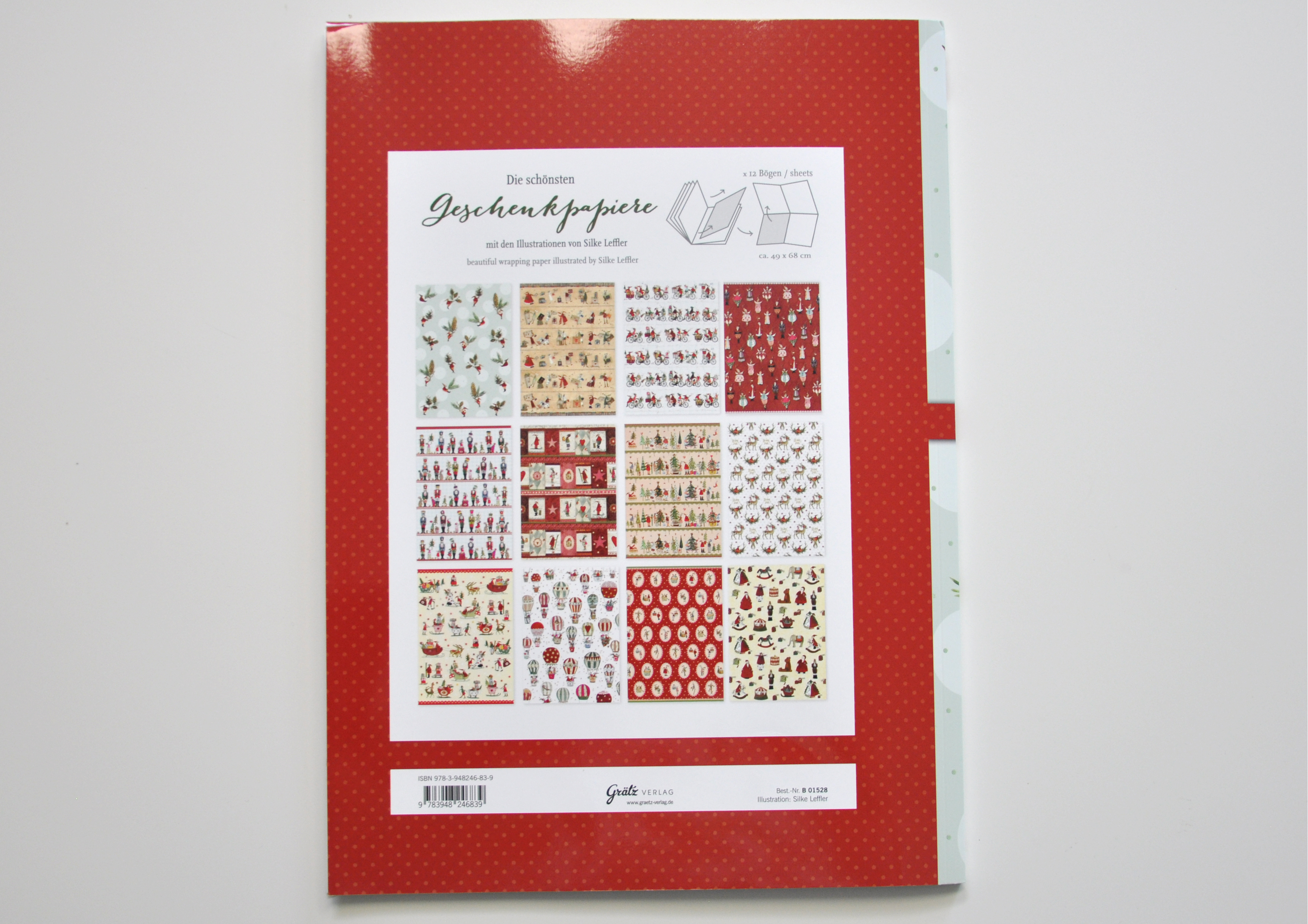 Die schönsten Geschenkpapiere zum Weihnachtsfest mit Illustrationen von Silke Leffler, findet ihr in diesem Geschenkpapierbuch - 12 verschieden Papiere und jedes ist bezaubernd schön.