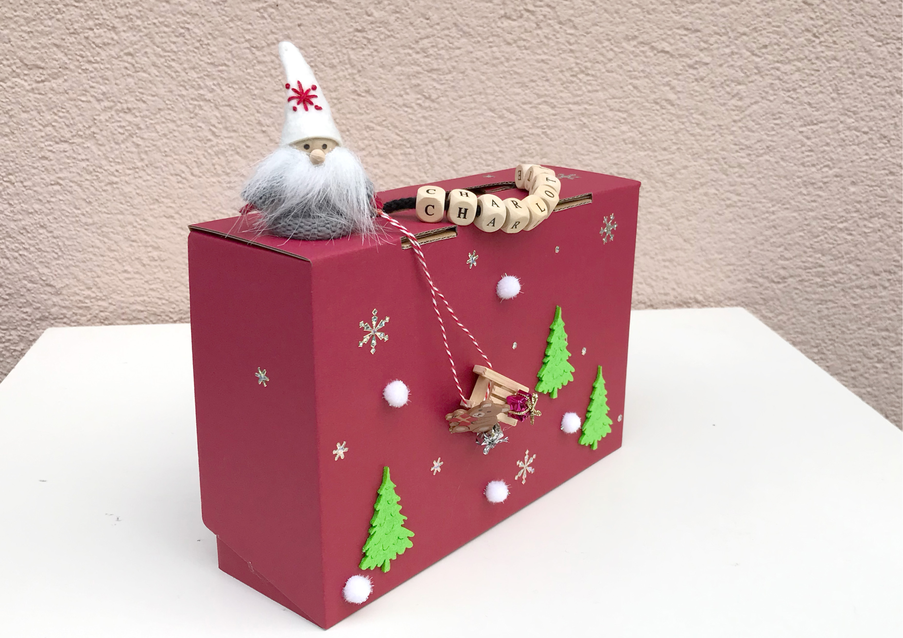 Geschenkschachtel / Koffer ROT zu Weihnachten - Wichtel mit Schlitten
