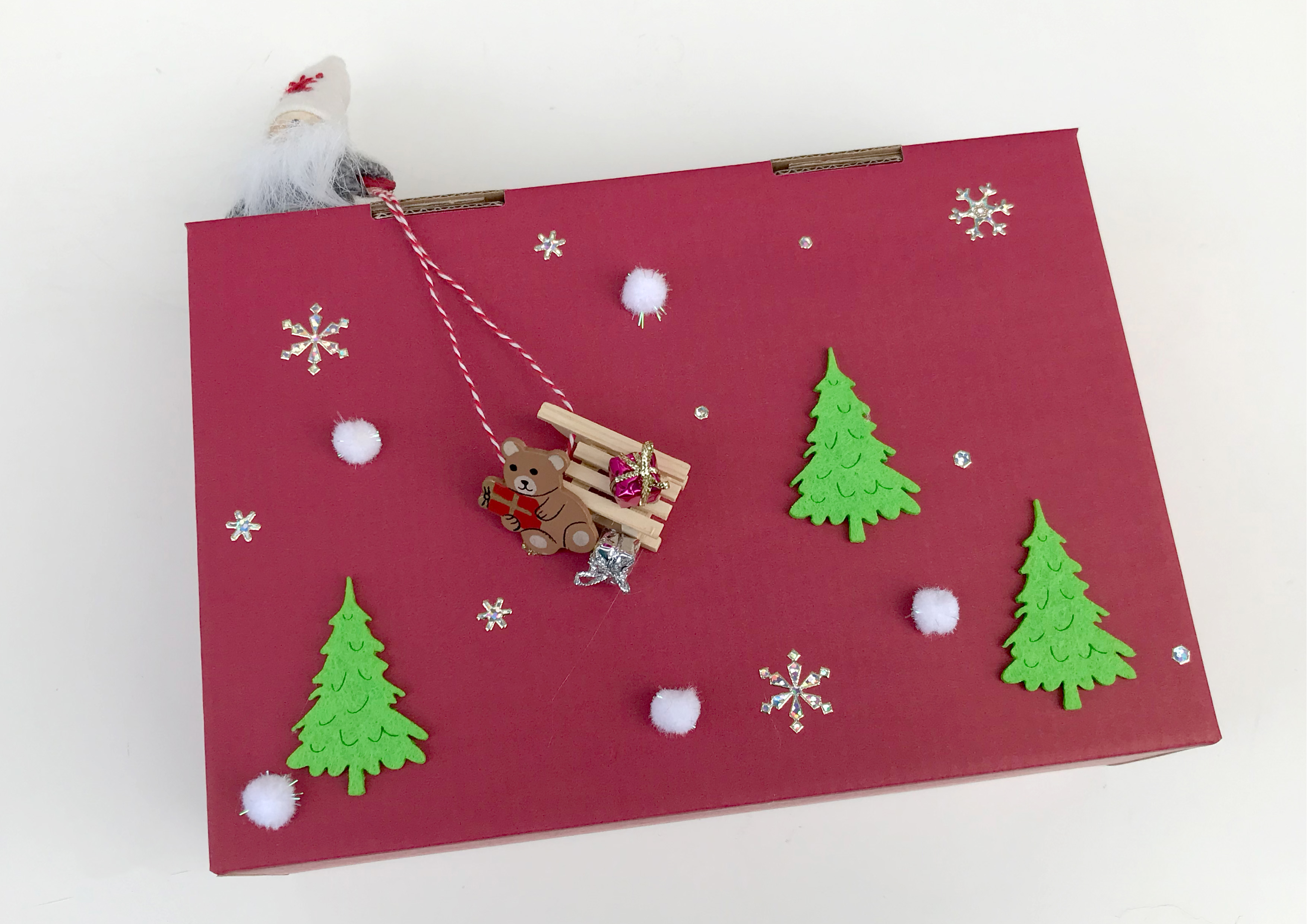 Auffallende Geschenkverpackung aus Pappe für die Adventszeit oder zum Weihnachtsfest.