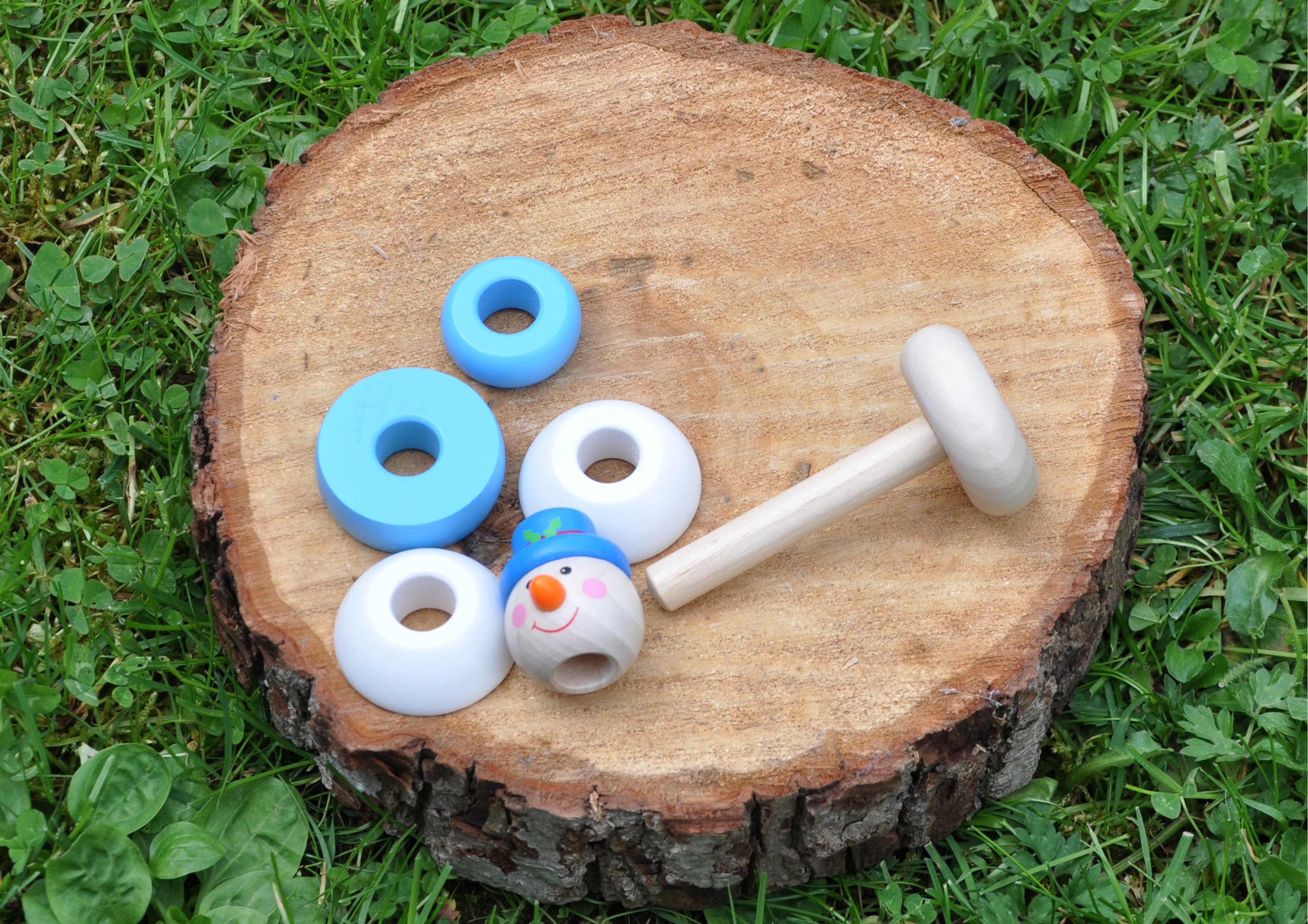 Die verschiedenen Steckelemente aus Holz müssen in die richtige Reihenfolge gebracht werden, da ist schon einiges Geschick notwendig.