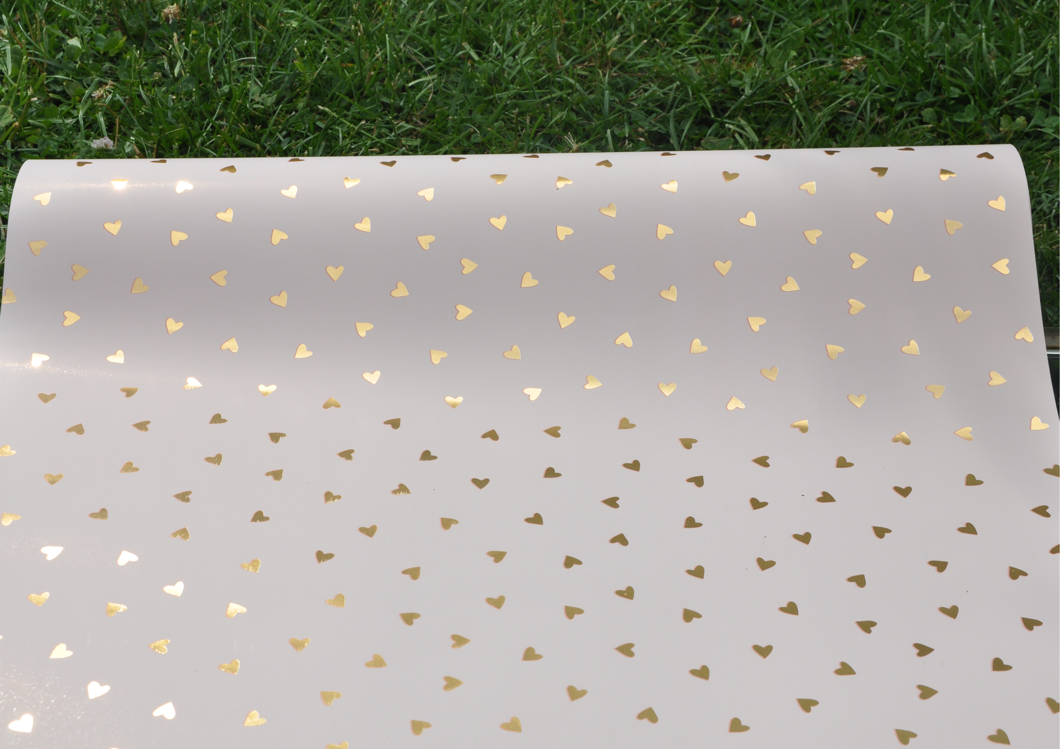 zartes Rosa / creme mit goldenen Herzen - Geschenkpapier Meterware