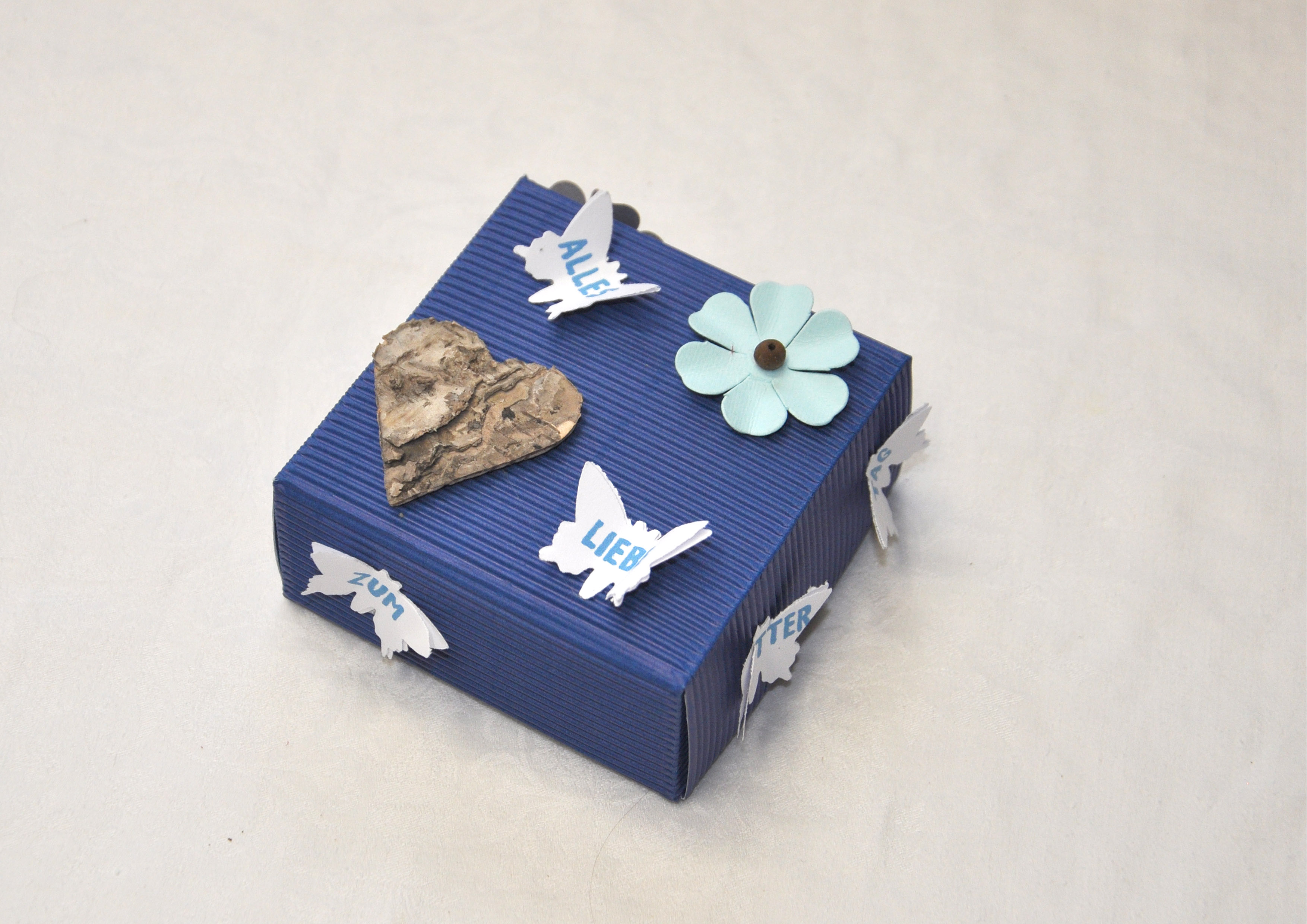 Die Schachtel haben wir aus Wellpappe gefertigt. Die Schmetterlinge bringen liebe Grüße für die Mama.
