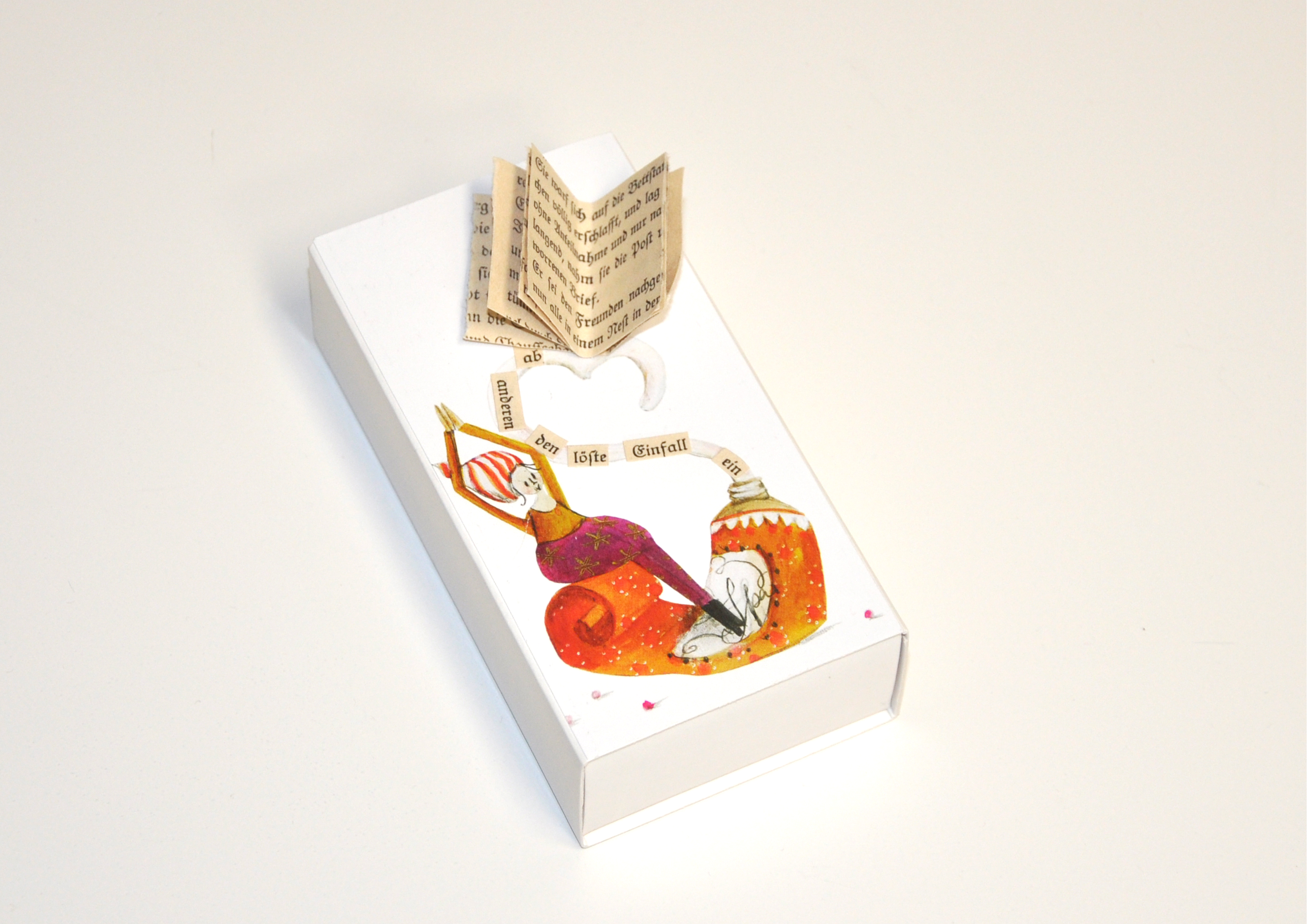 Aus der Tube kommen die Worte und sammeln sich im Buch. Eine zauberhafte Vorstellung.