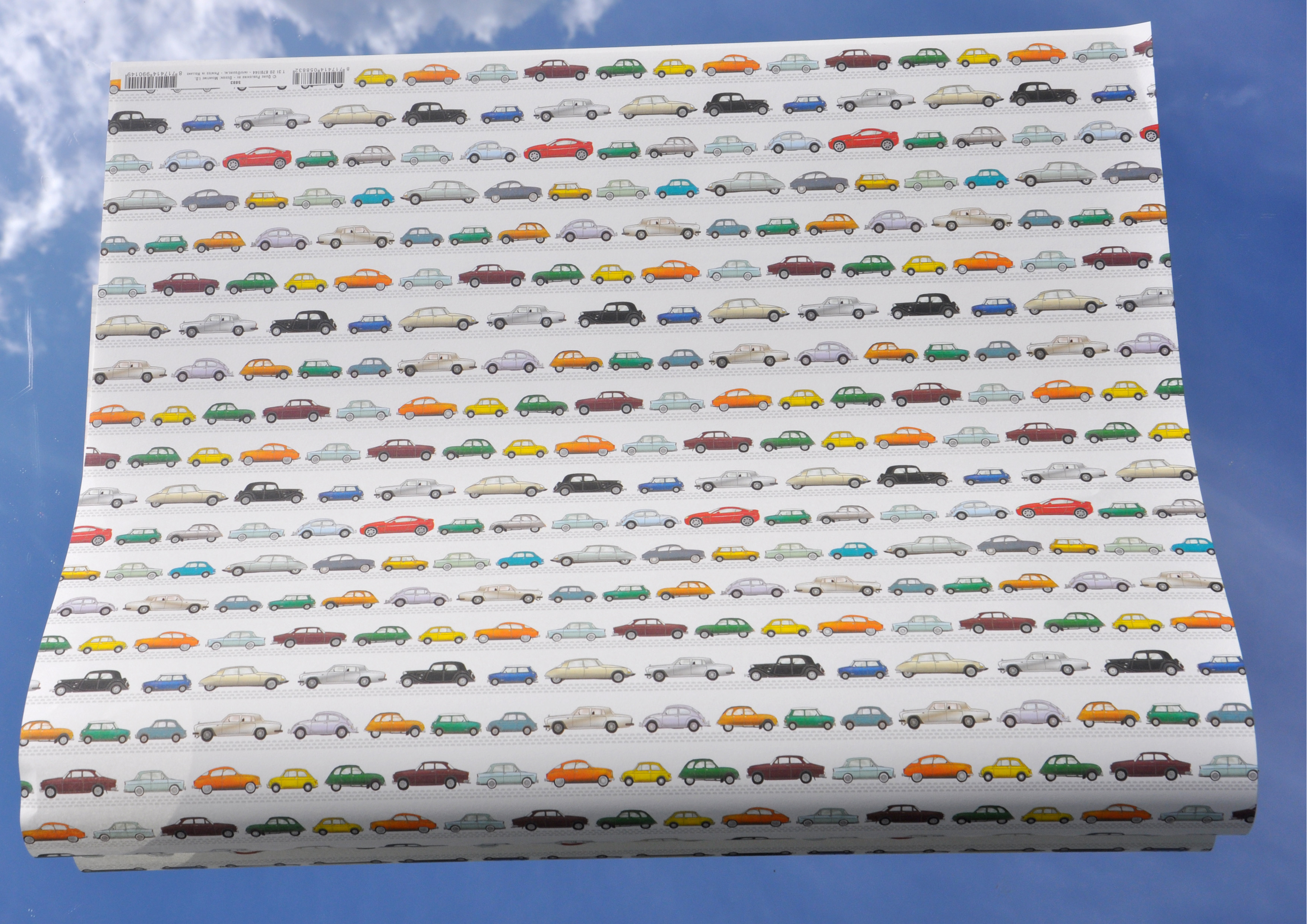 Geschenkpapier mit vielen Autos - harmonisch in Reih und Glied.