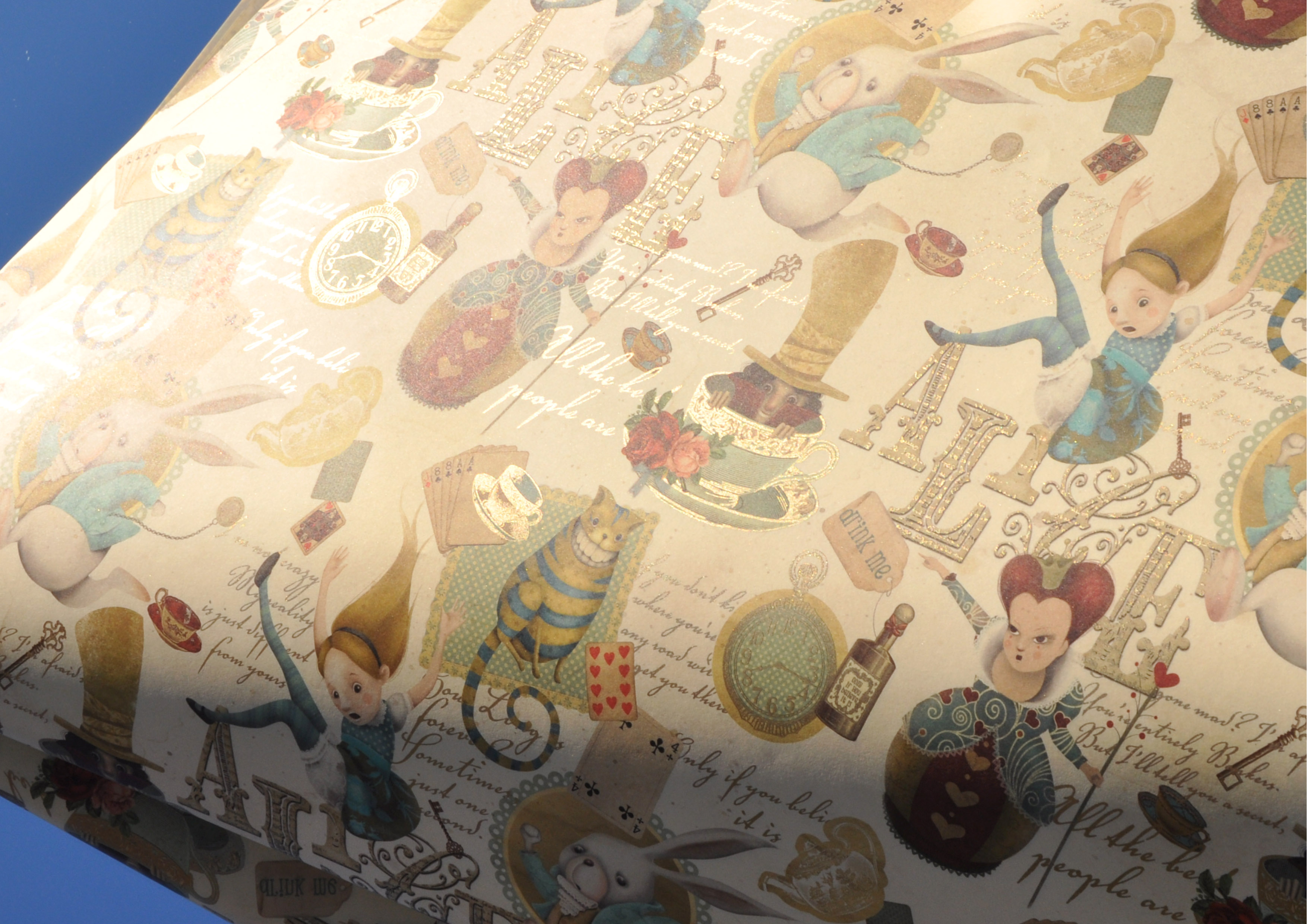 Alice im Wunderland - Geschenkpapier mit Golddruck