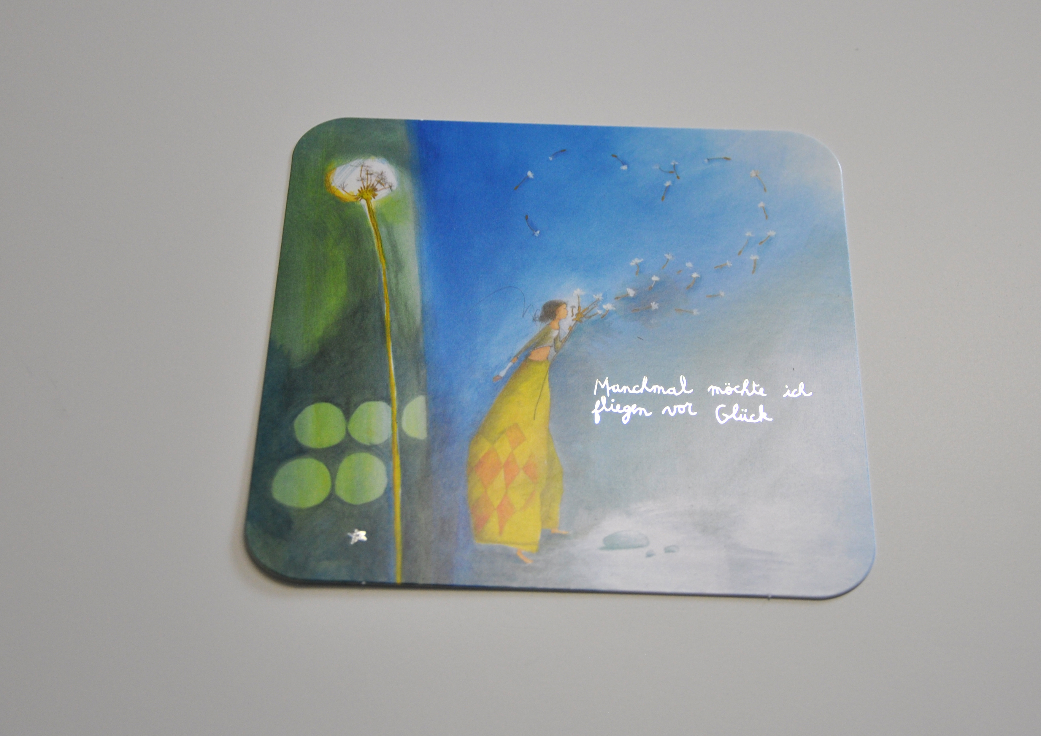 Die Karten der Künstlerin Anne-Sophie Rutsaert sind immer wieder zauberhaft. Mit kleinen Zitaten, Sprüchen oder Wünschen versehen, sind diese kleinen Kunstwerke für viele Anlässe geeignet. Man kann sie auch sehr gut als Dekoration verwenden.