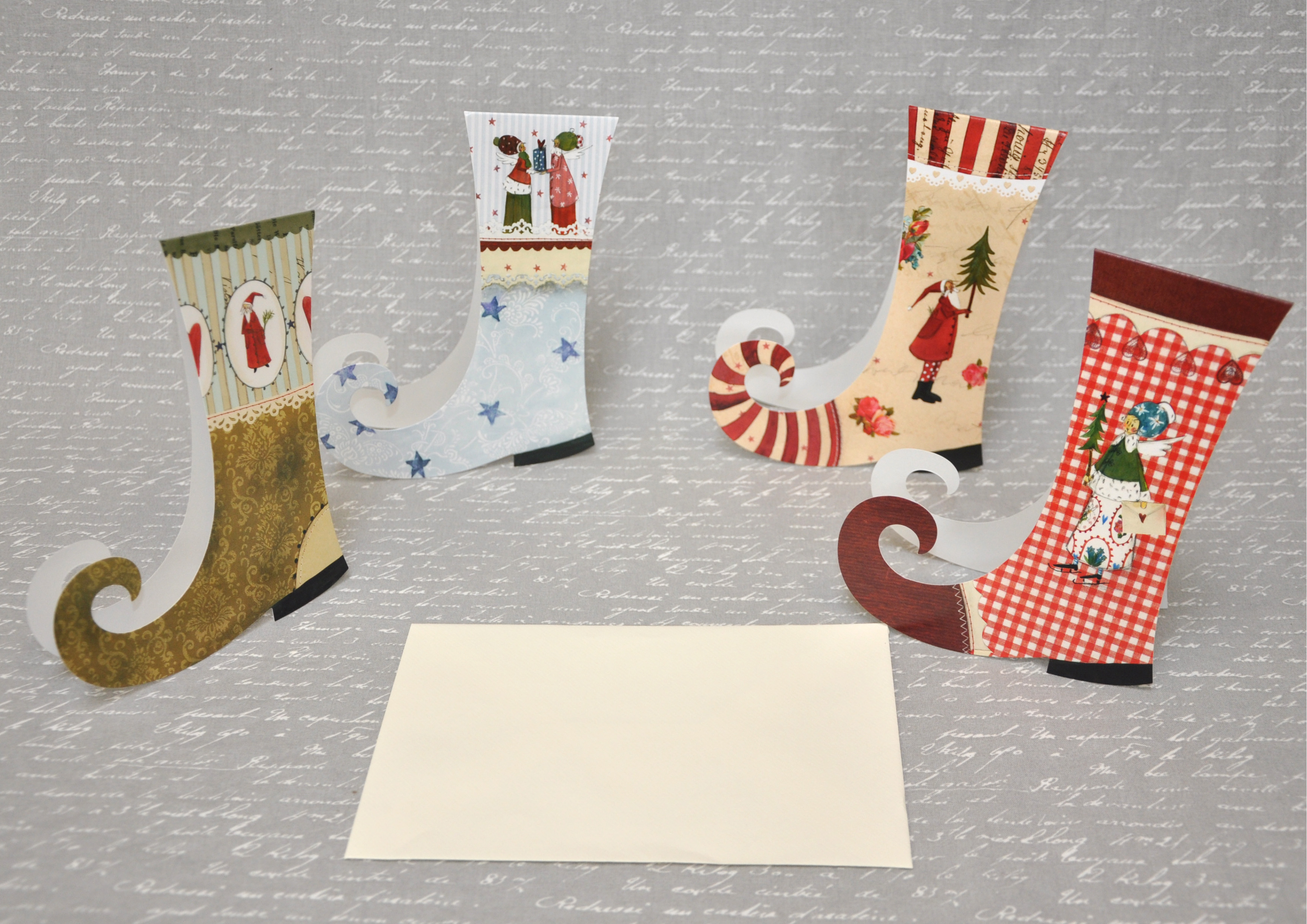 Diese Weihnachtskarte fällt auf und sofort ins Auge. In Form eines Stiefels kann sie auch als Dekoration einfach aufgestellt werden.