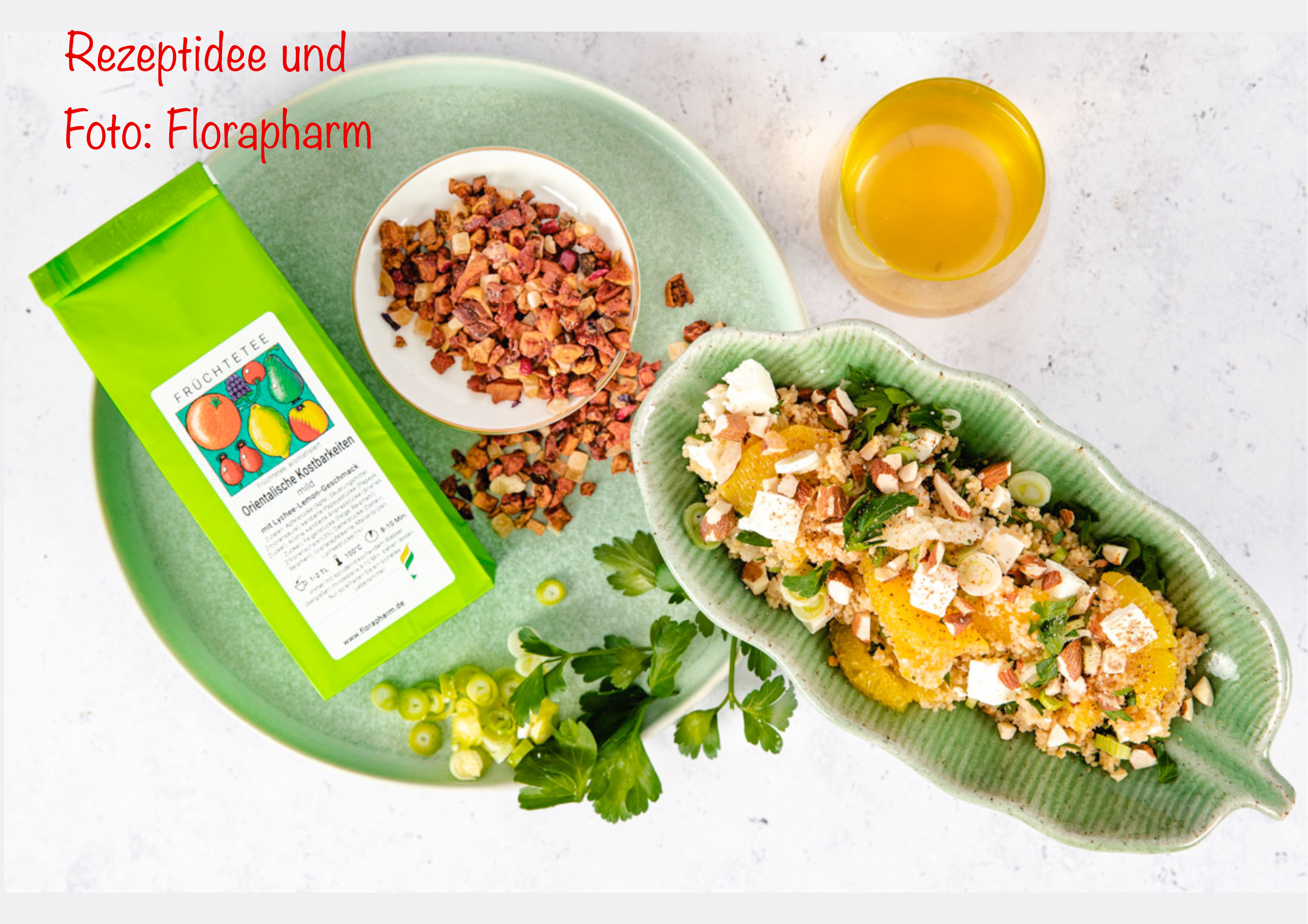 Orientalische Kostbarkeiten mild - Früchtetee Lychee Lemon Geschmack Rezeptidee Couscous Salat