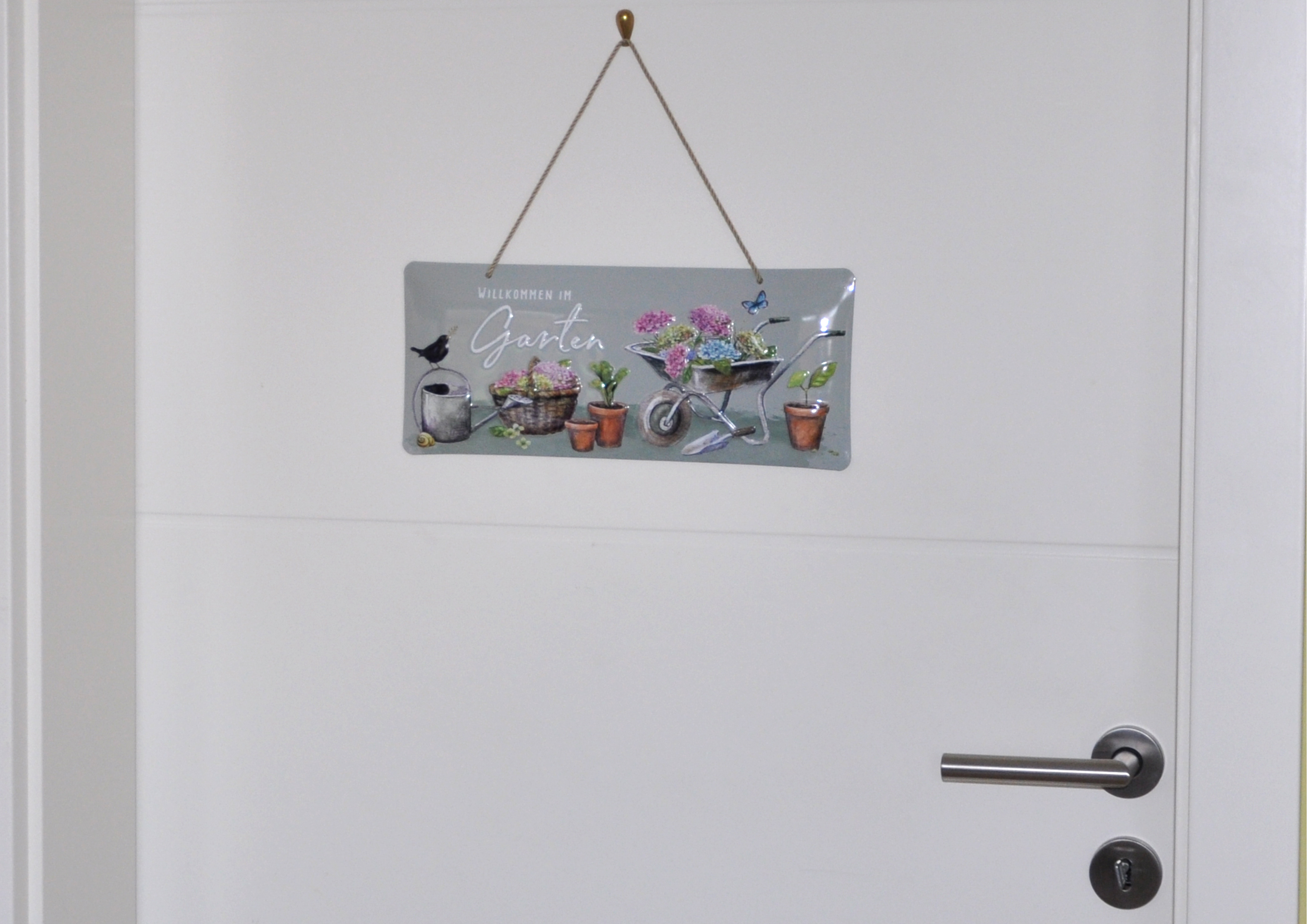 Produktinformationen "Willkommen im Garten - geprägtes Schild aus Blech"